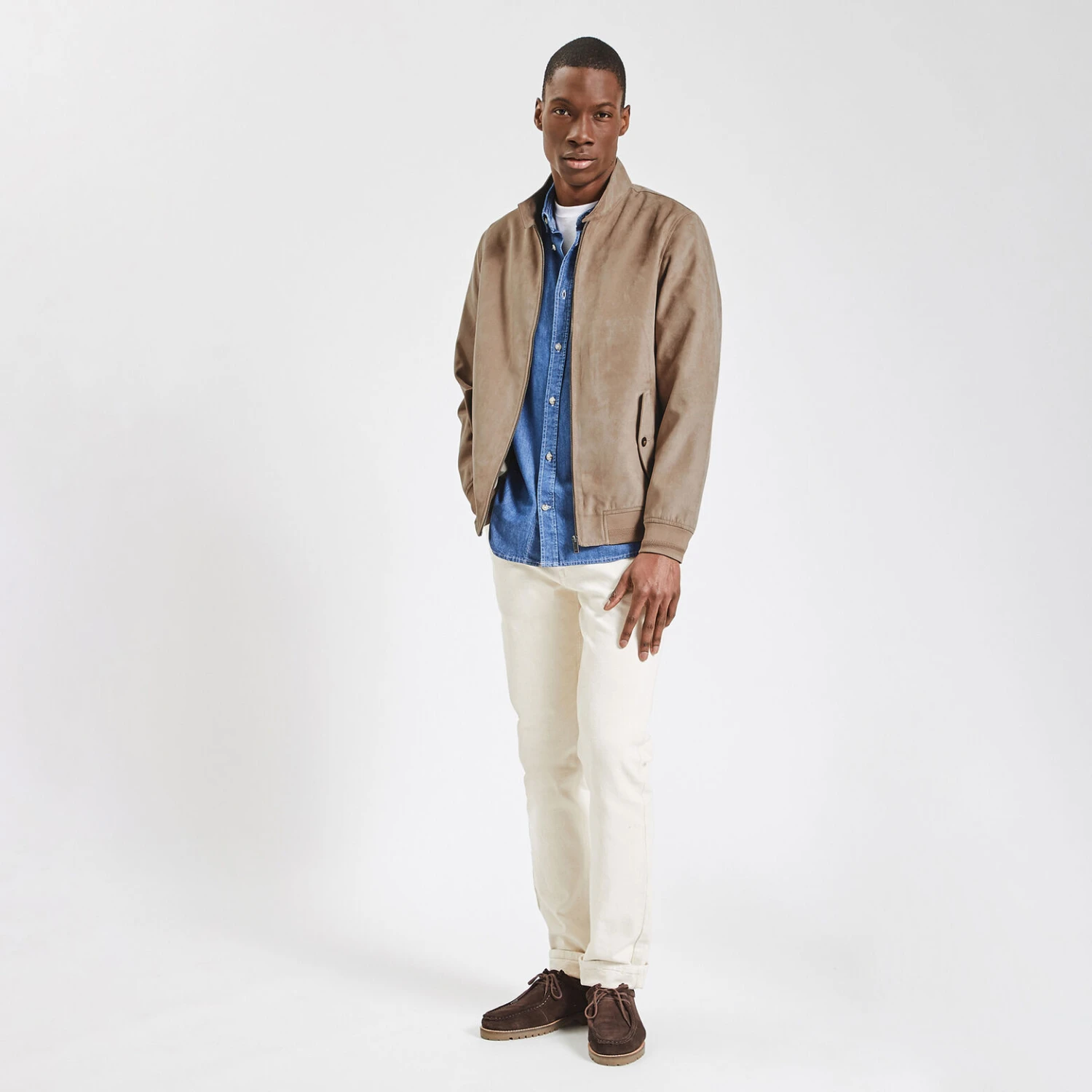 Ce blouson léger aspect velours, simple mais polyvalent, offre durabilité à votre tenue.