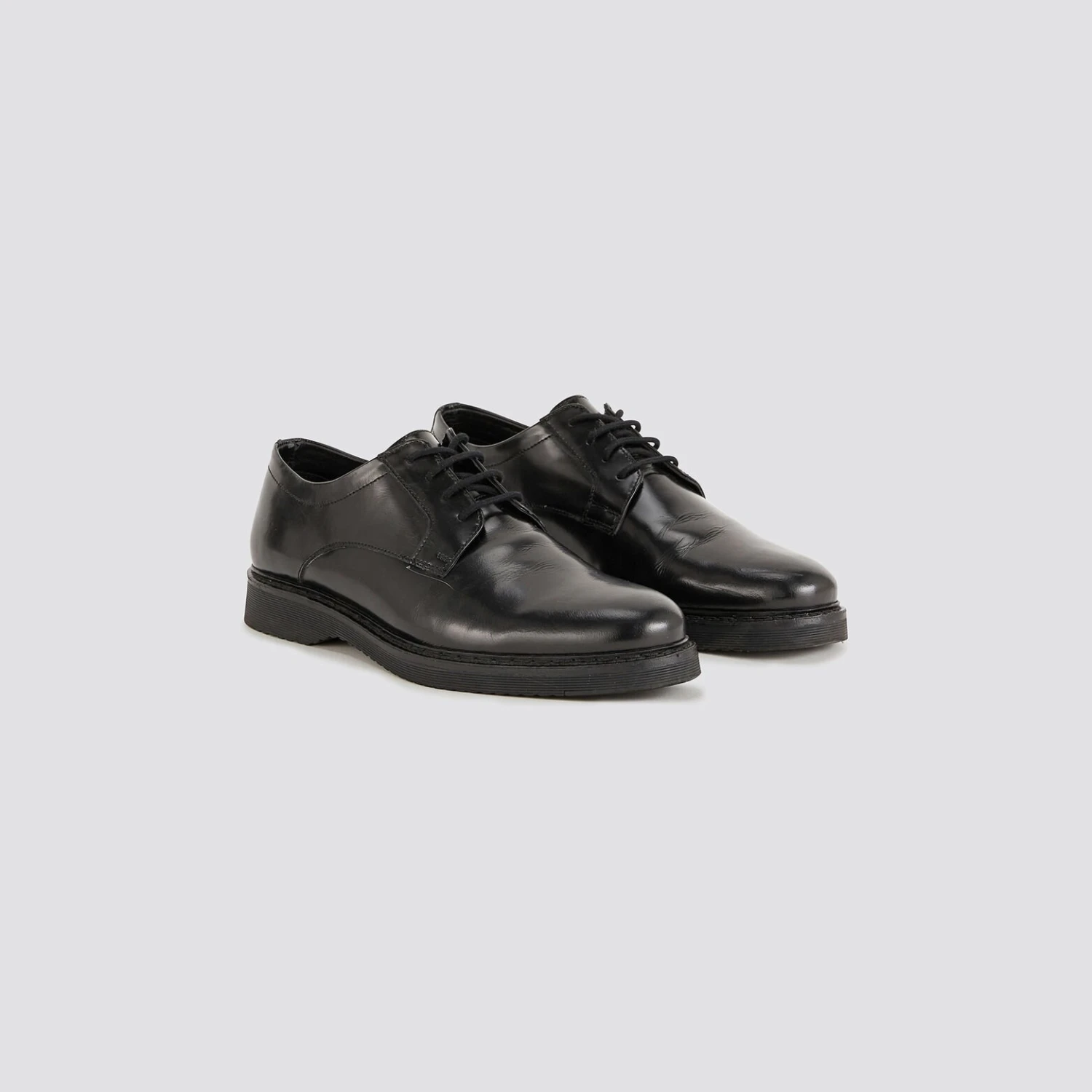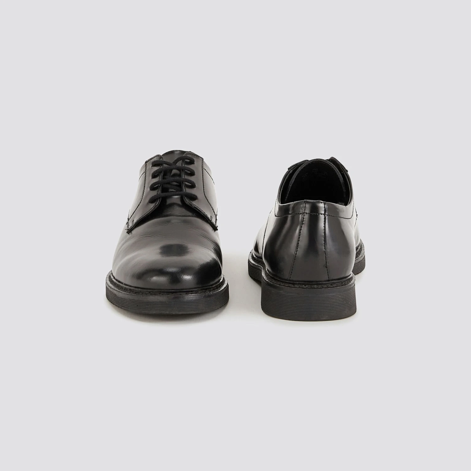 Ces chaussures vernies à lacets sont en cuir avec une semelle épaisse. Elles conviennent très bien avec un jean ou un pantalon chino.