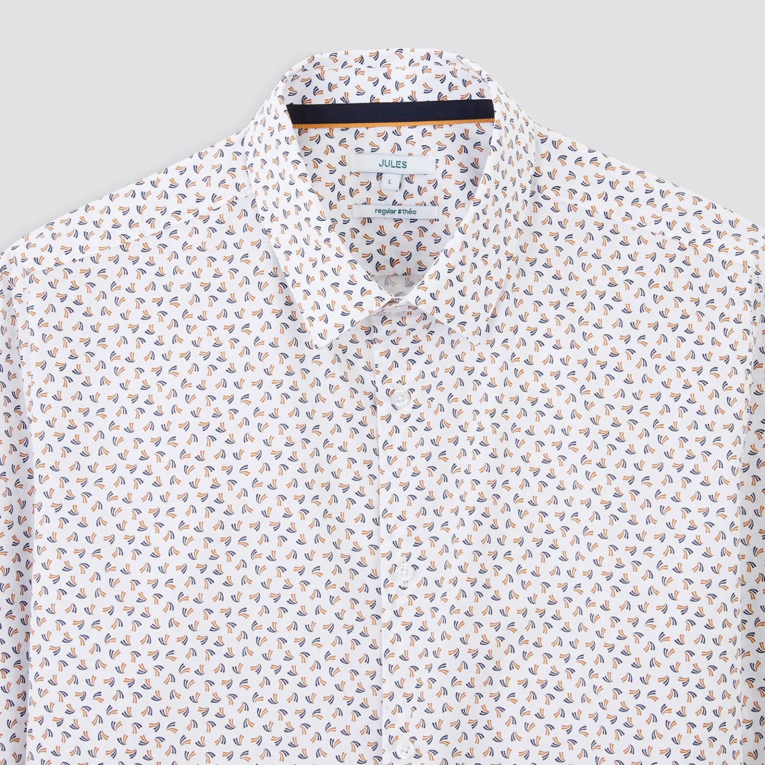 Cette chemise à manches longues en coton, à micro motifs géométriques, possède une fermeture boutonnée, des boutons en bas de manches, une base arrondie et une coupe regular, pour un porté cool.