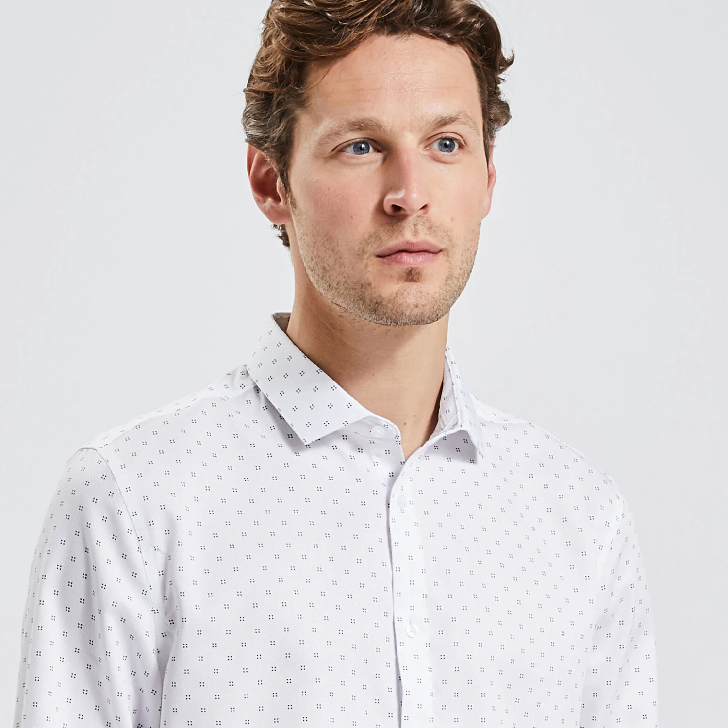 Cette chemise à manches longues en coton, avec motifs en jacquard, s’adapte à toute morphologie et à toutes les situations : Look sportswear décontracté ou urbain plus habillé.