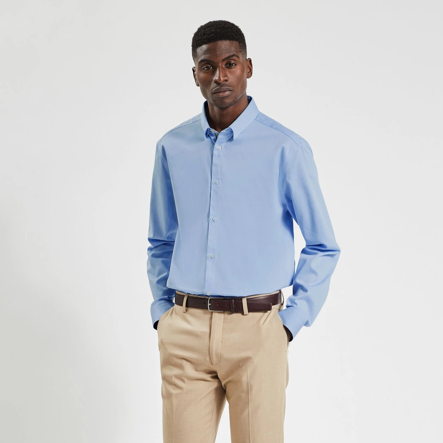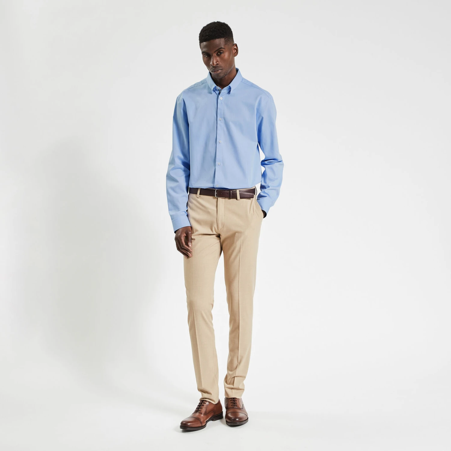 - Coupe regular, ni trop ajustée ni trop large avec un tombé droit