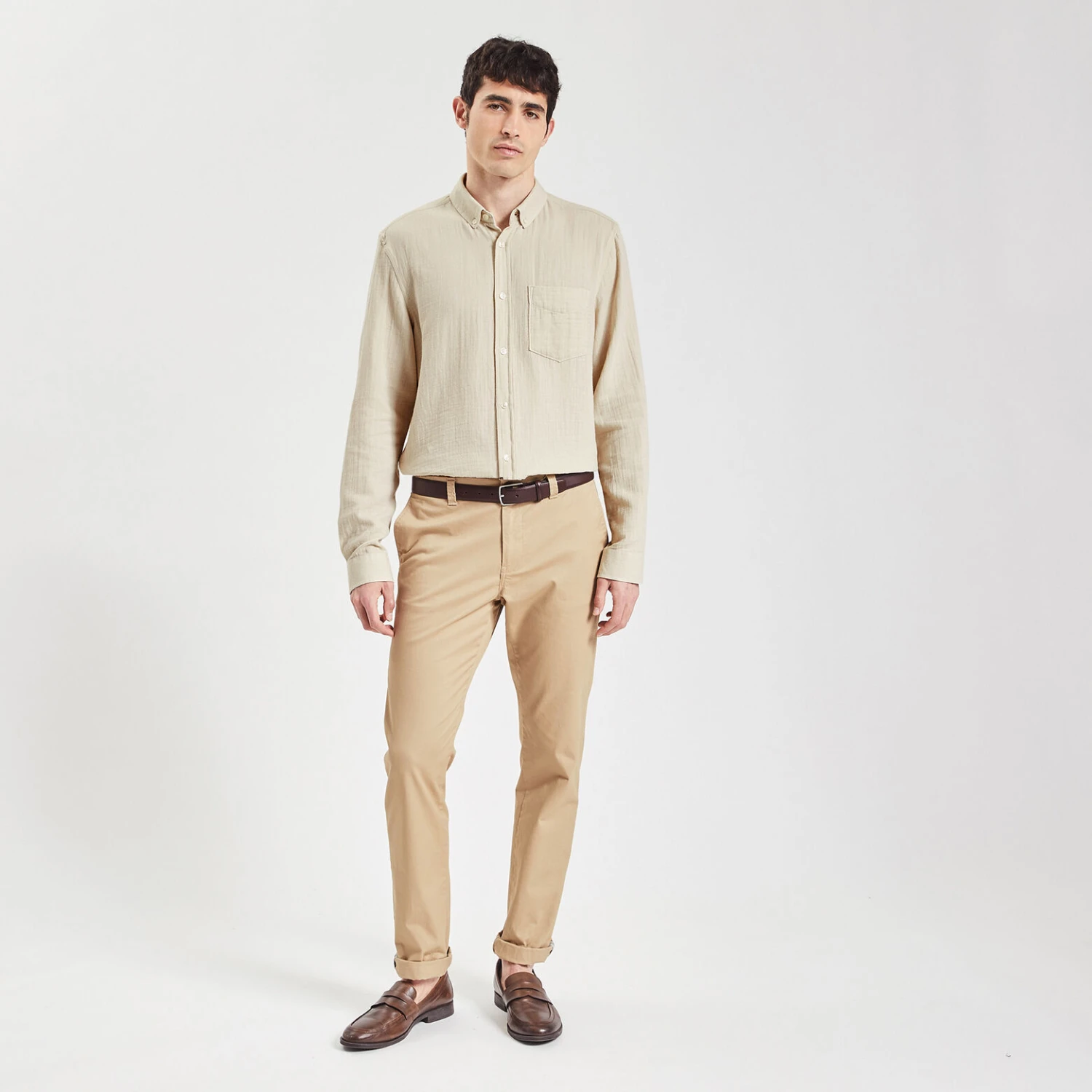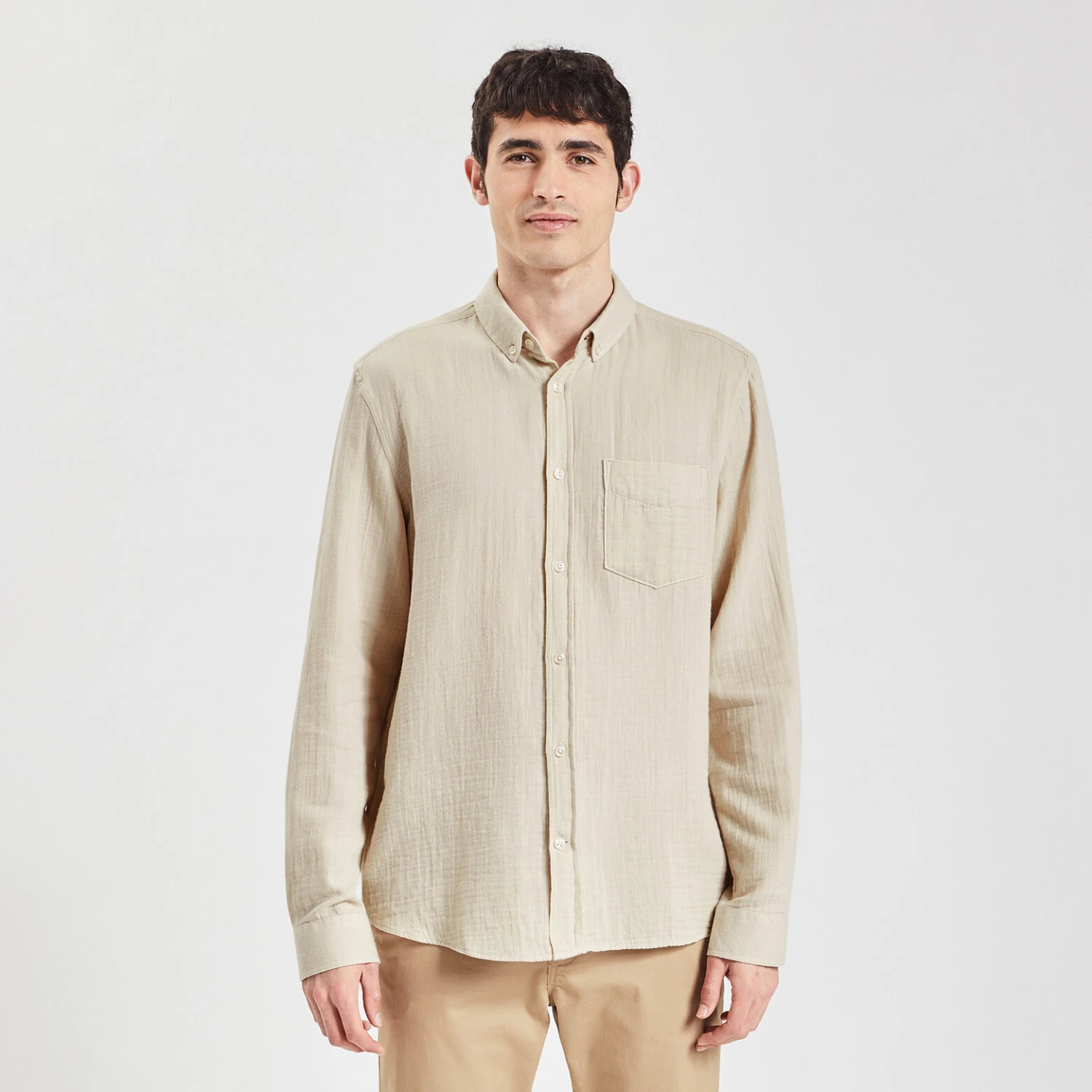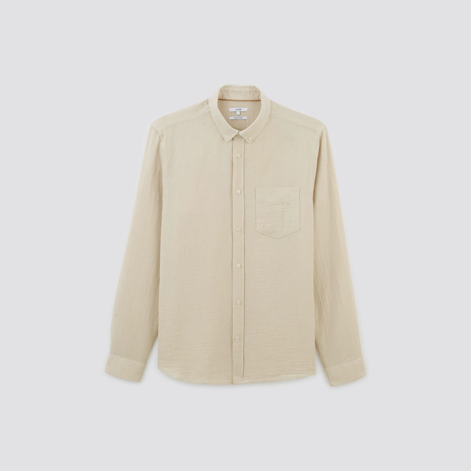 Cette chemise en gaze de coton est éco-conçue. La démarche d’éco-conception a pour but de réduire l’impact environnemental d’un produit sur tout son cycle de vie, de sa conception en passant par la sélection des matières premières jusqu’à la fin de vie. Chez Jules, c’est l’assurance de porter au cœur de nos process de création et de fabrication la question de la durabilité et de la circularité de vos vêtements. Reliefée, douce, légère et confortable, elle est un intemporel du dressing masculin.
