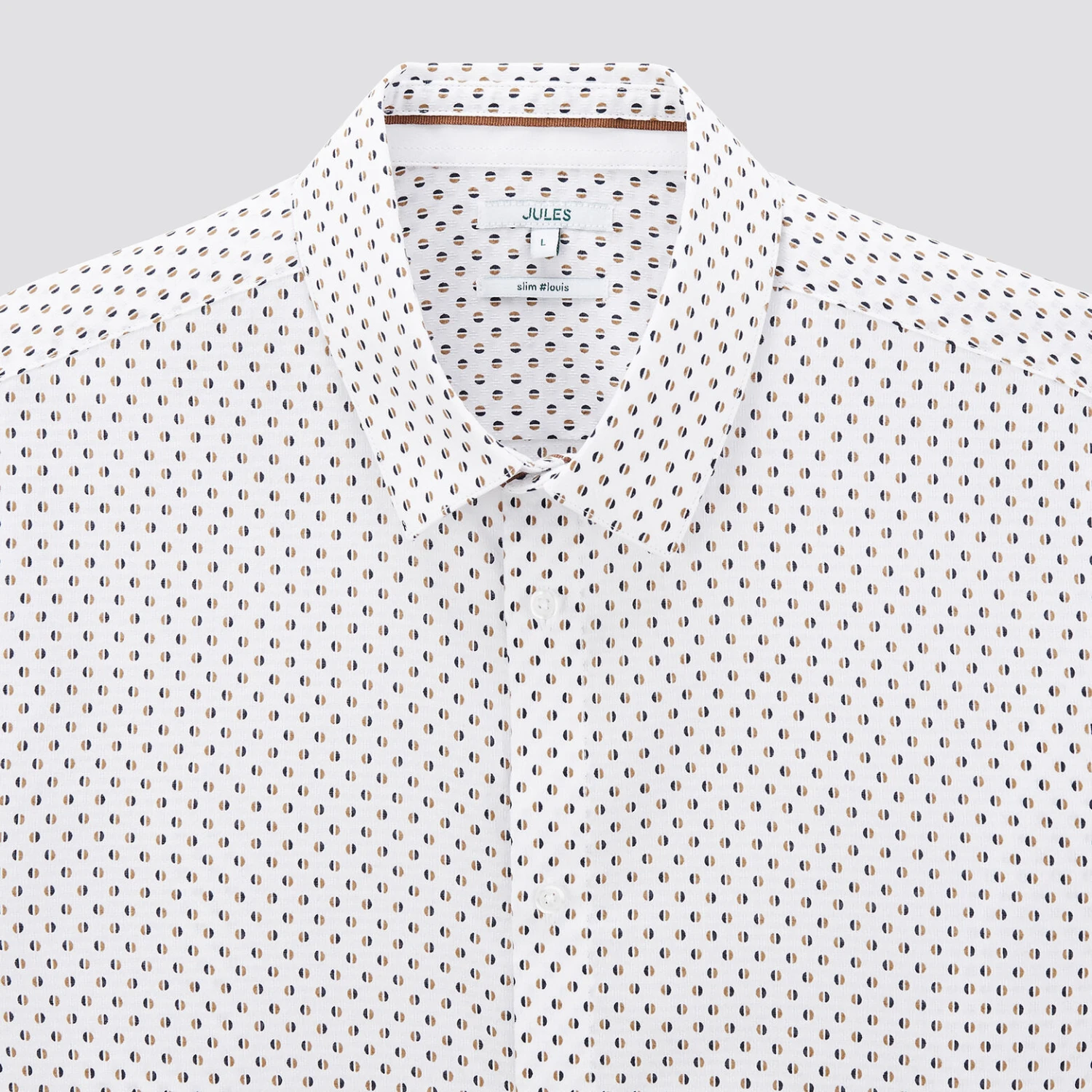 Cette chemise imprimée géométrique est confectionnée en 100% coton dobby qui allie la douceur du coton à la texture alvéolée et soyeuse de son tissage. Fibre naturelle, le coton est léger et respirant, hypoallergénique et adapté aux peaux sensibles. La chemise en dobby se prête aux occasions élégantes.