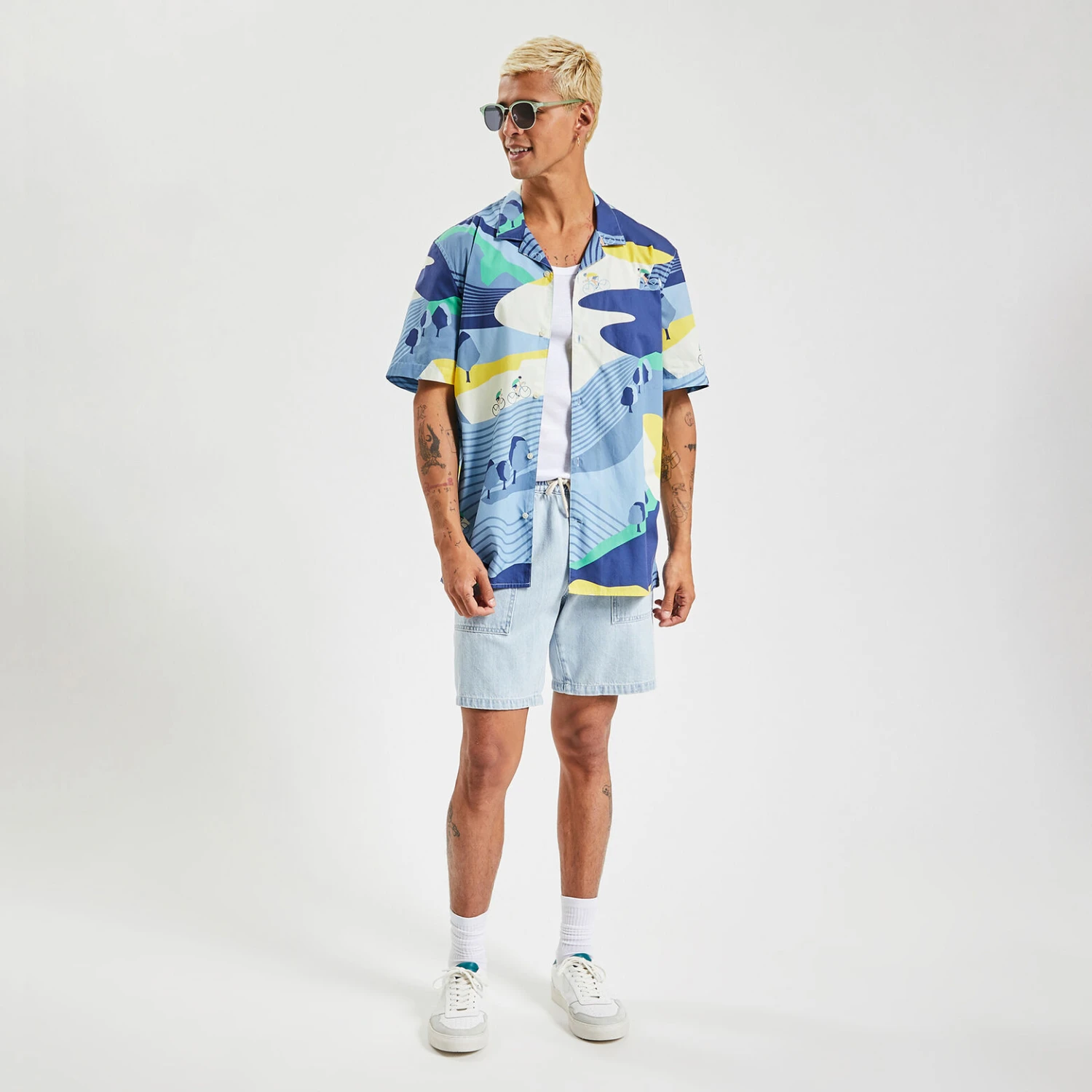 Jules est de nouveau fournisseur officiel du Tour de France. Jules vous propose cette chemisette imprimée dans un dessin exclusif clin d’oeil au Tour de France. Cette chemisette aux couleurs estivales, vous accompagnera au quotidien. Avec un jean ou un bermuda, cette chemisette saura rendre vos tenues stylées et détendues.