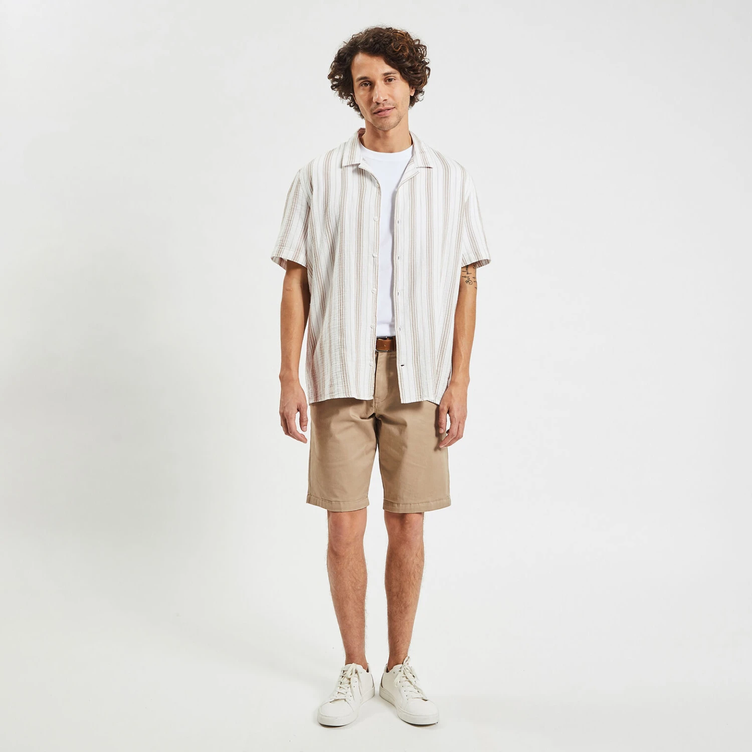 Cette chemisette à rayures en gaze de coton est douce et confortable à porter. Idéale pour un style estival décontracté, elle peut s’associer avec un bermuda, un chino ou un short.
