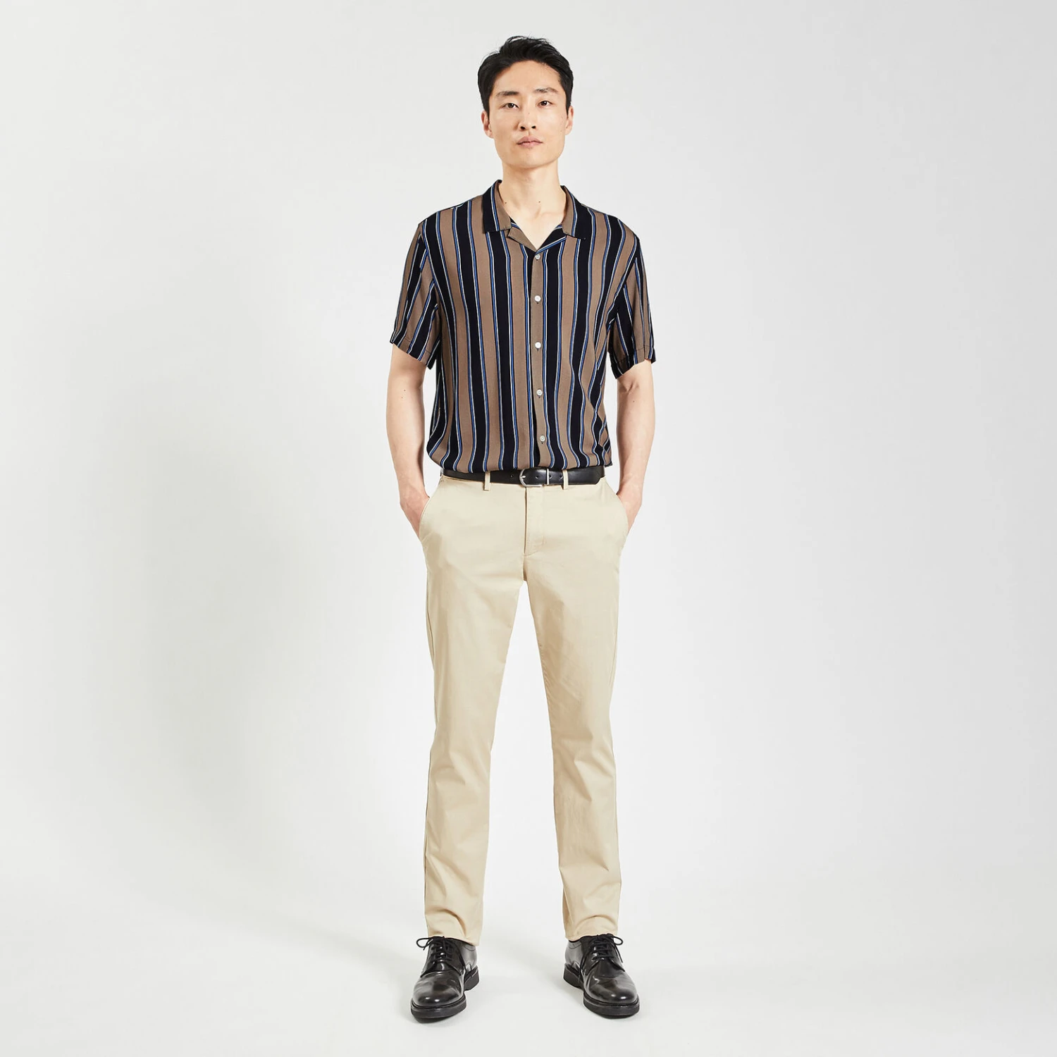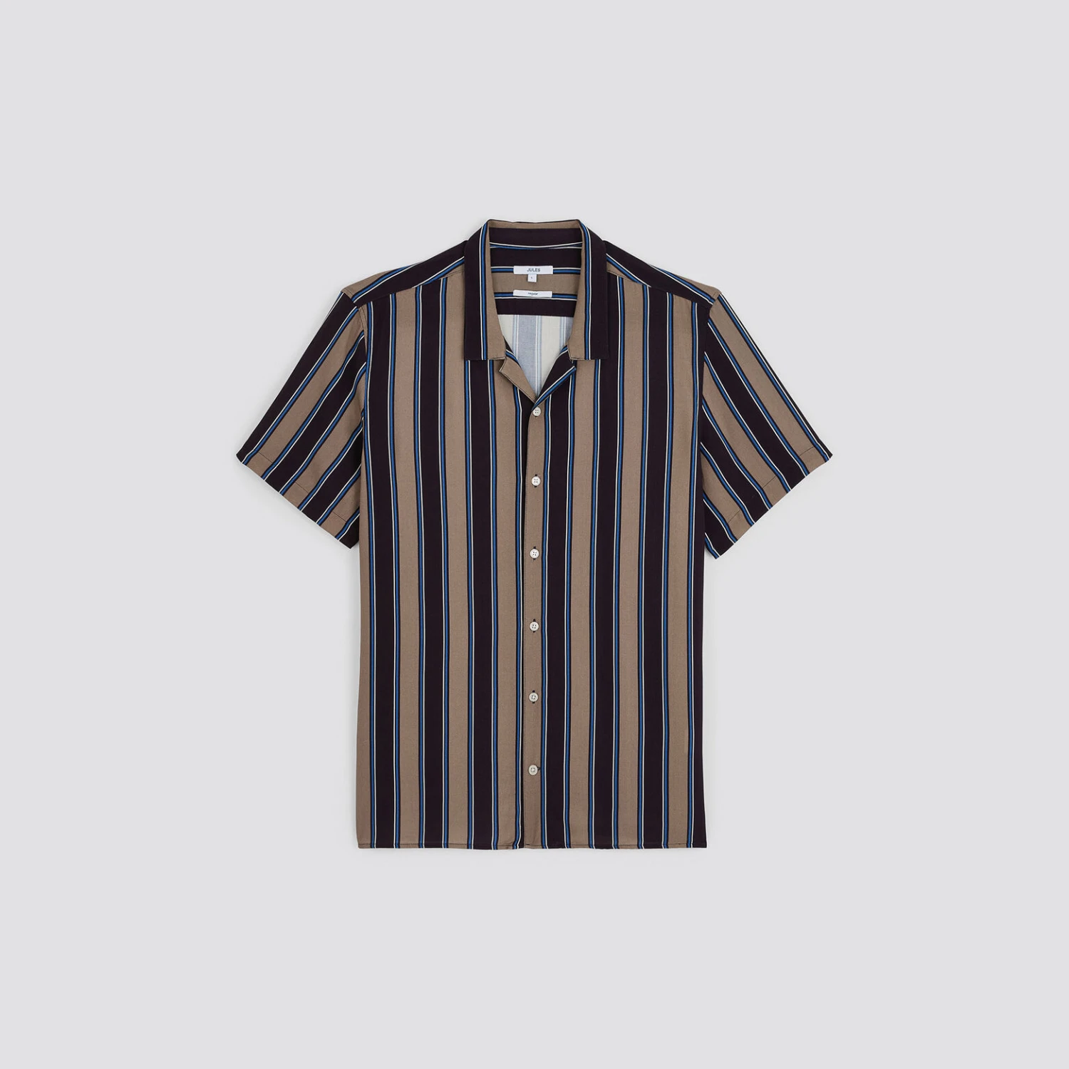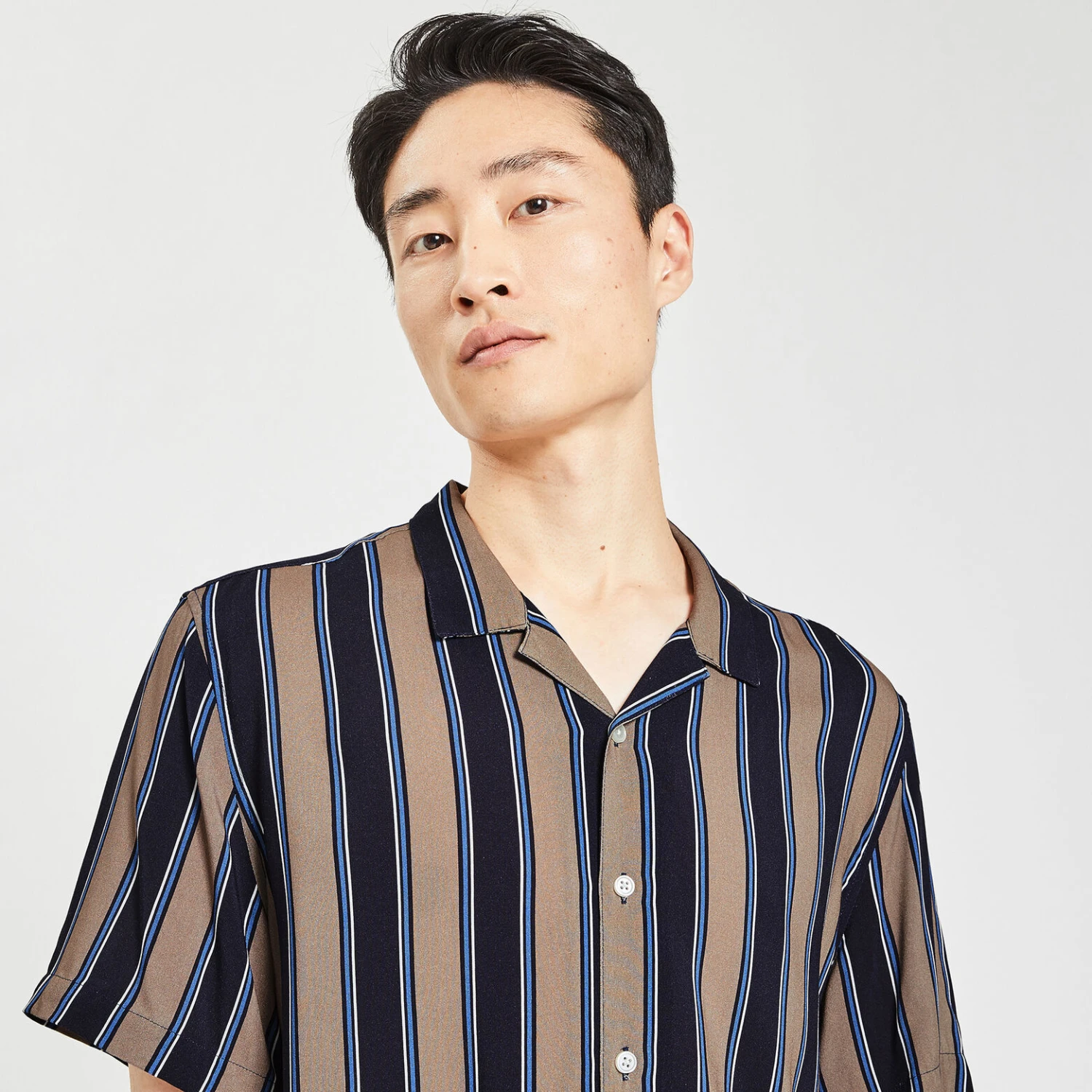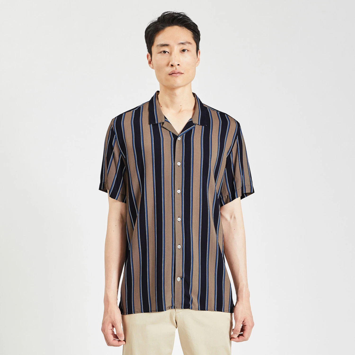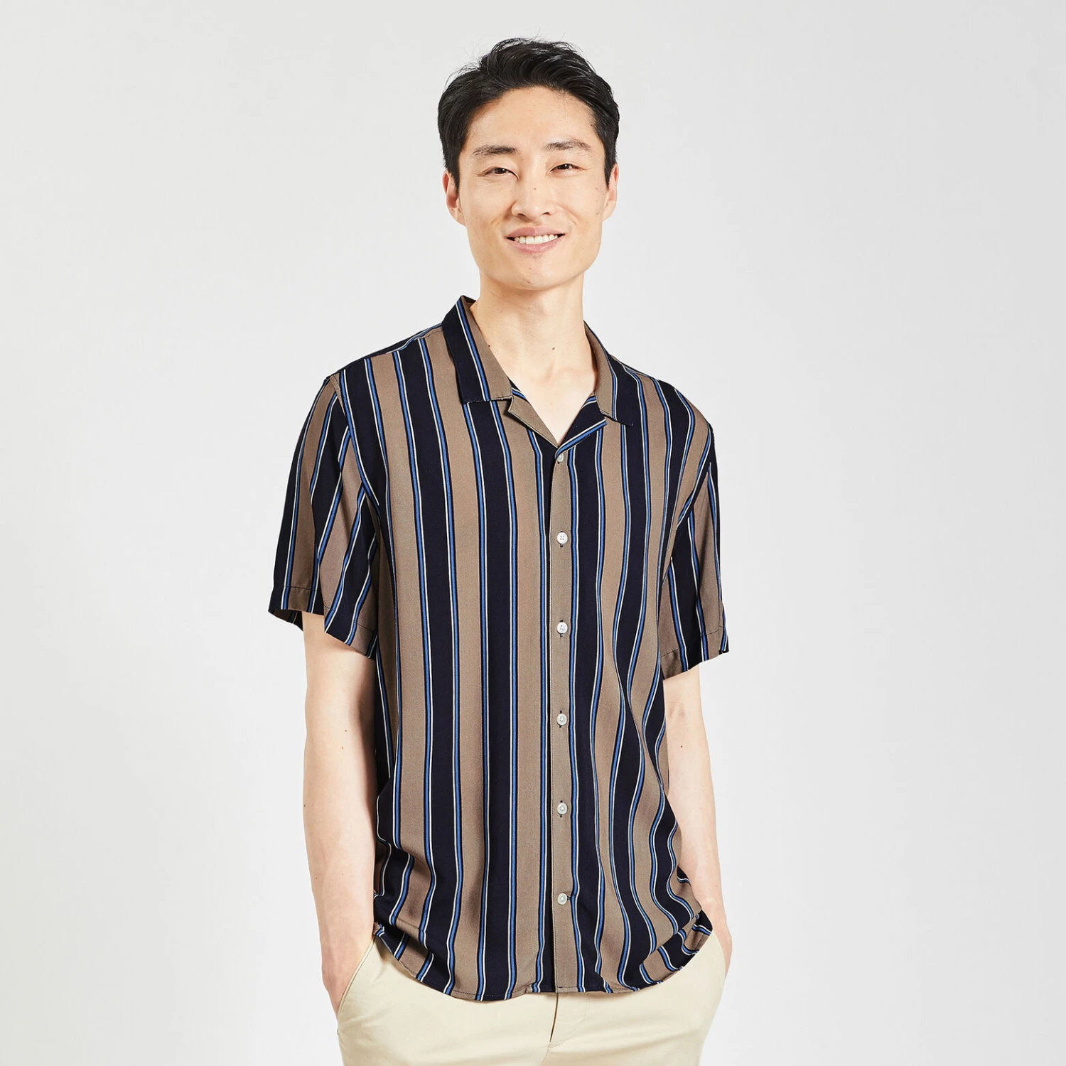 Cette chemise rayĂ©e Ă manches courtes, douce, lĂ©gère et confortable, est parfaite pour la pĂ©riode estivale. Elle s’assortit très bien avec un pantalon chino, pour un style chic et dĂ©contractĂ©.