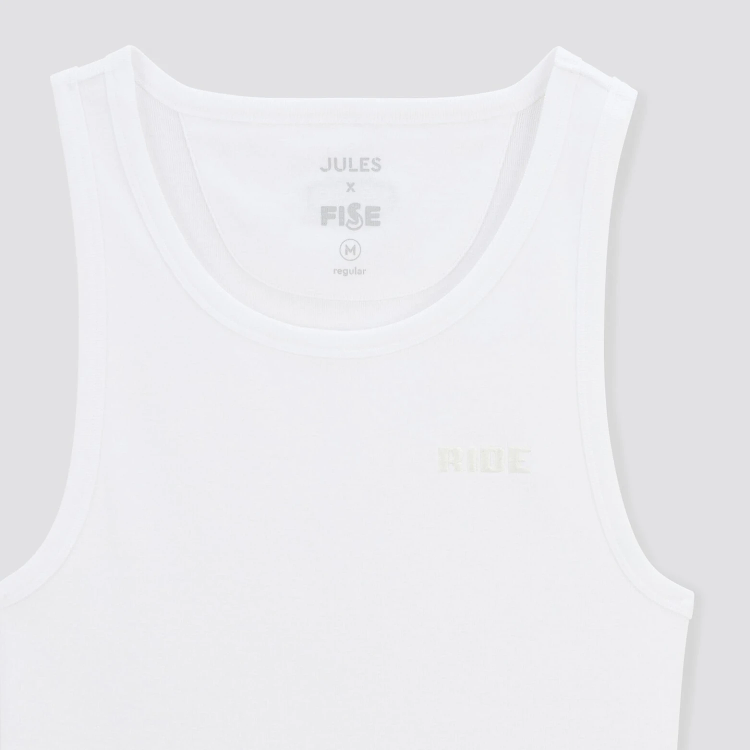 Jules est de nouveau fournisseur officiel de FISE. Cette collection en co-création avec Alexandre Jumelin, vous propose un débardeur blanc brodé « RIDE » sur le coeur. Ce débardeur possède une coupe seconde peau en côte, pour un porté cool et décontracté adaptée aux riders. Le FISE : le Festival International des sports extrêmes est un grand rassemblement à Montpellier le week end de l’ascension et réunit des riders de tous horizons : skate, bmx, roller, break dance¿ Jules est partenaire officiel de cet événement gratuit avec une collection capsule exclusive mixte, composée de t-shirts, sweat, casquette et chaussettes, avec un supplément d’âme RSE puisque les produits sont proches import et composés pour la plupart de matières durables comme le coton recyclé. Ce produit est intégralement fait au Portugal. Le mannequin mesure… et porte une taille …