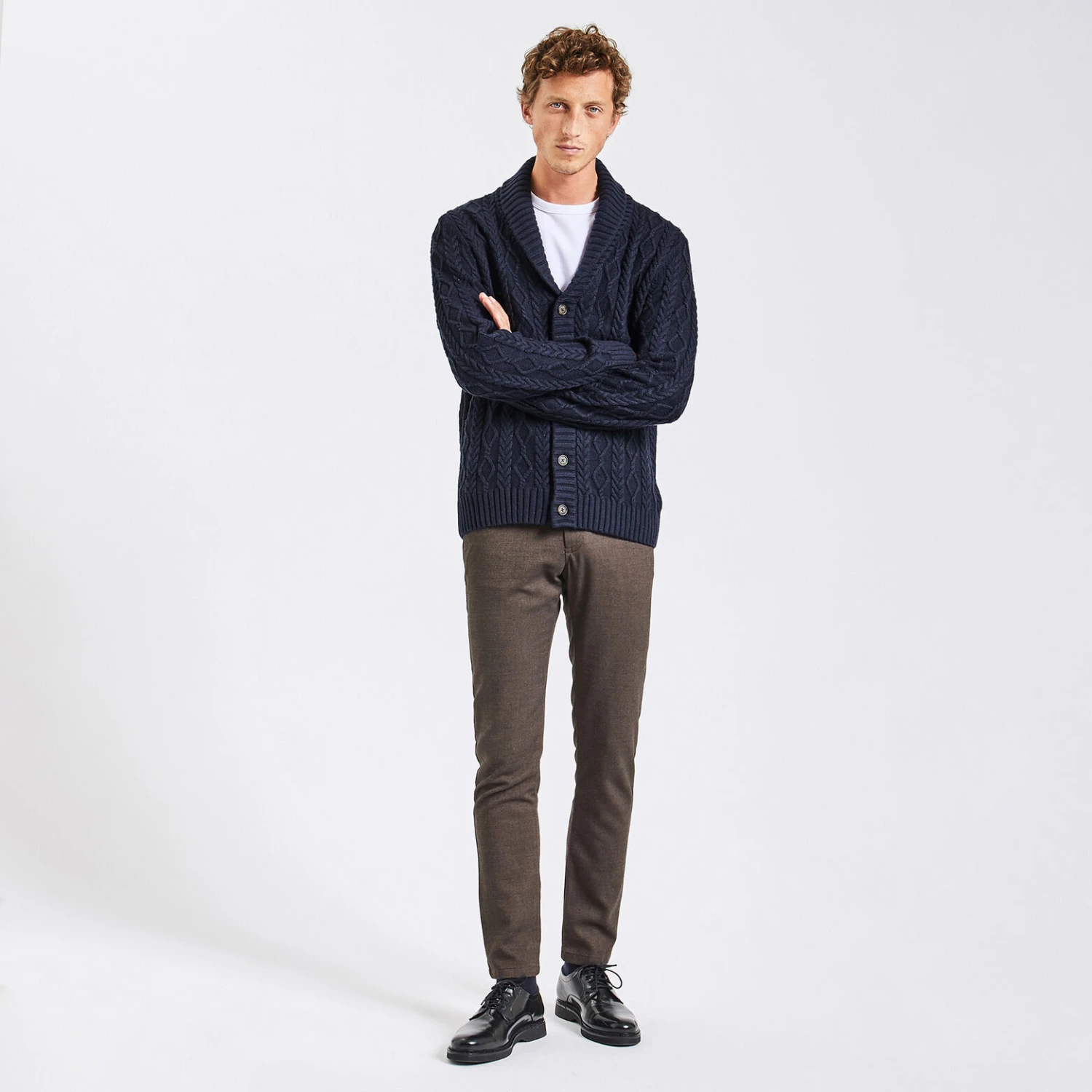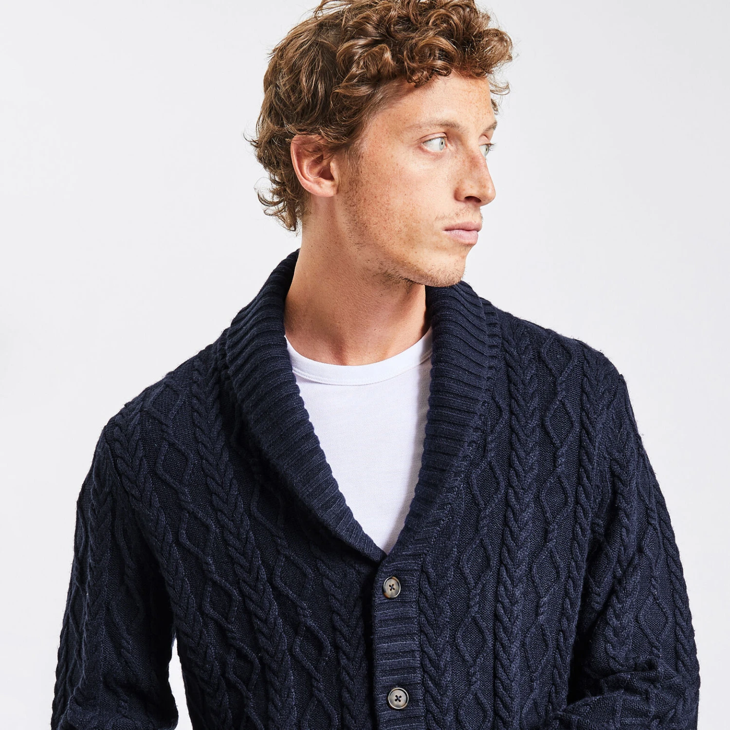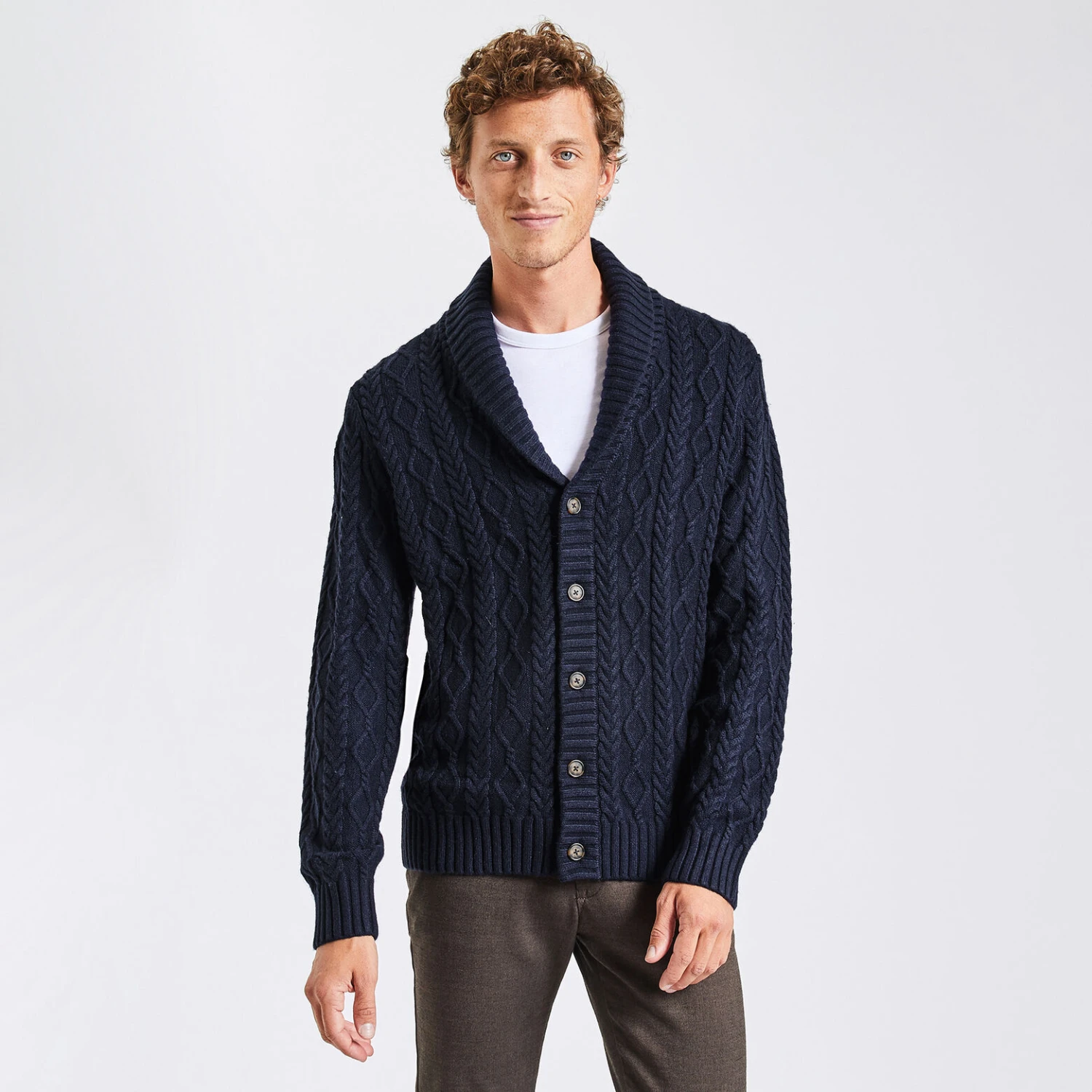 Portez ce gilet col châle selon vos envies : en mode cool avec un t-shirt, ou en mode élégant avec une chemise !
