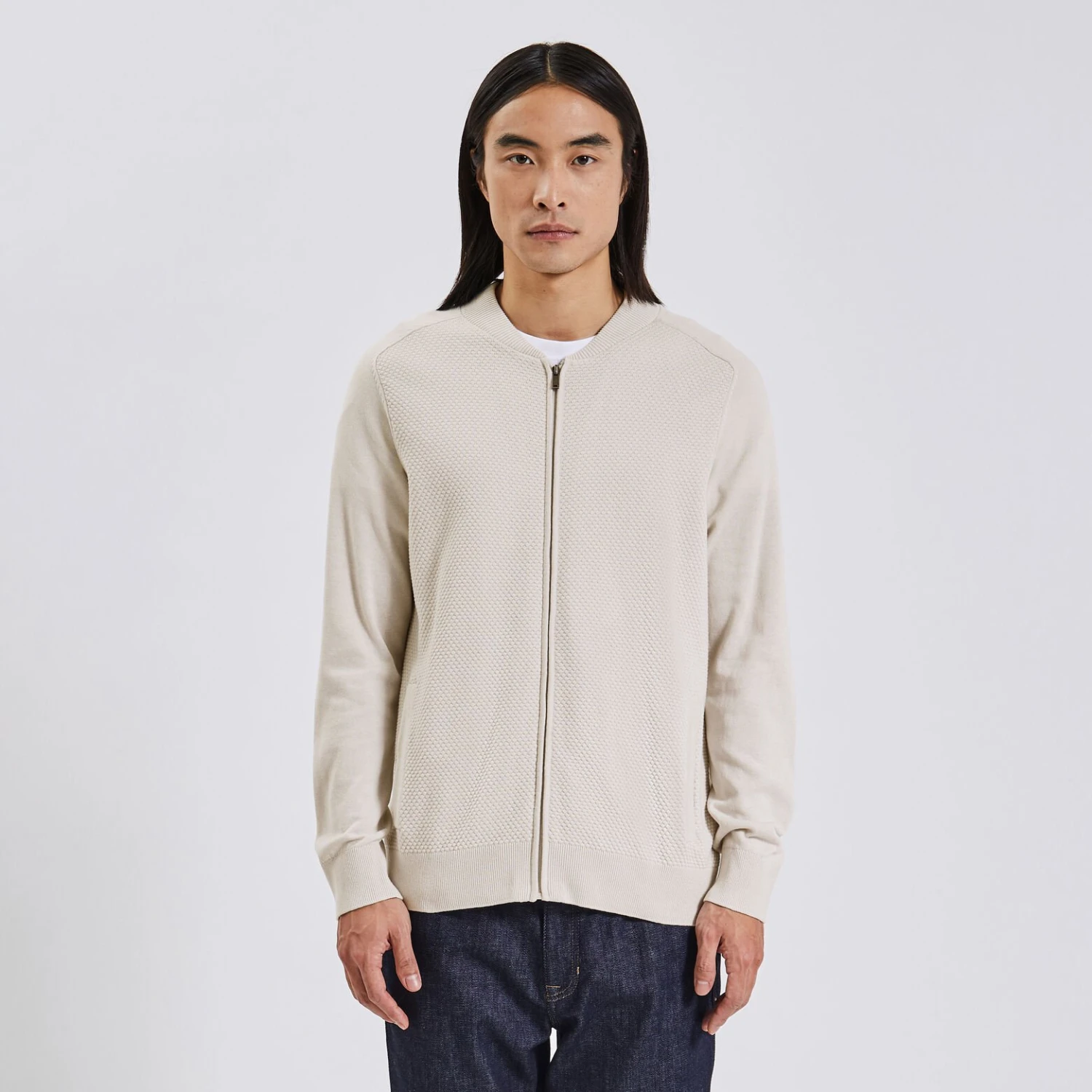 Le combo de deux mailles différentes en fait une pièce unique dans le vestiaire masculin.