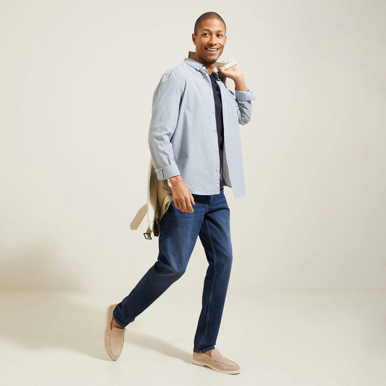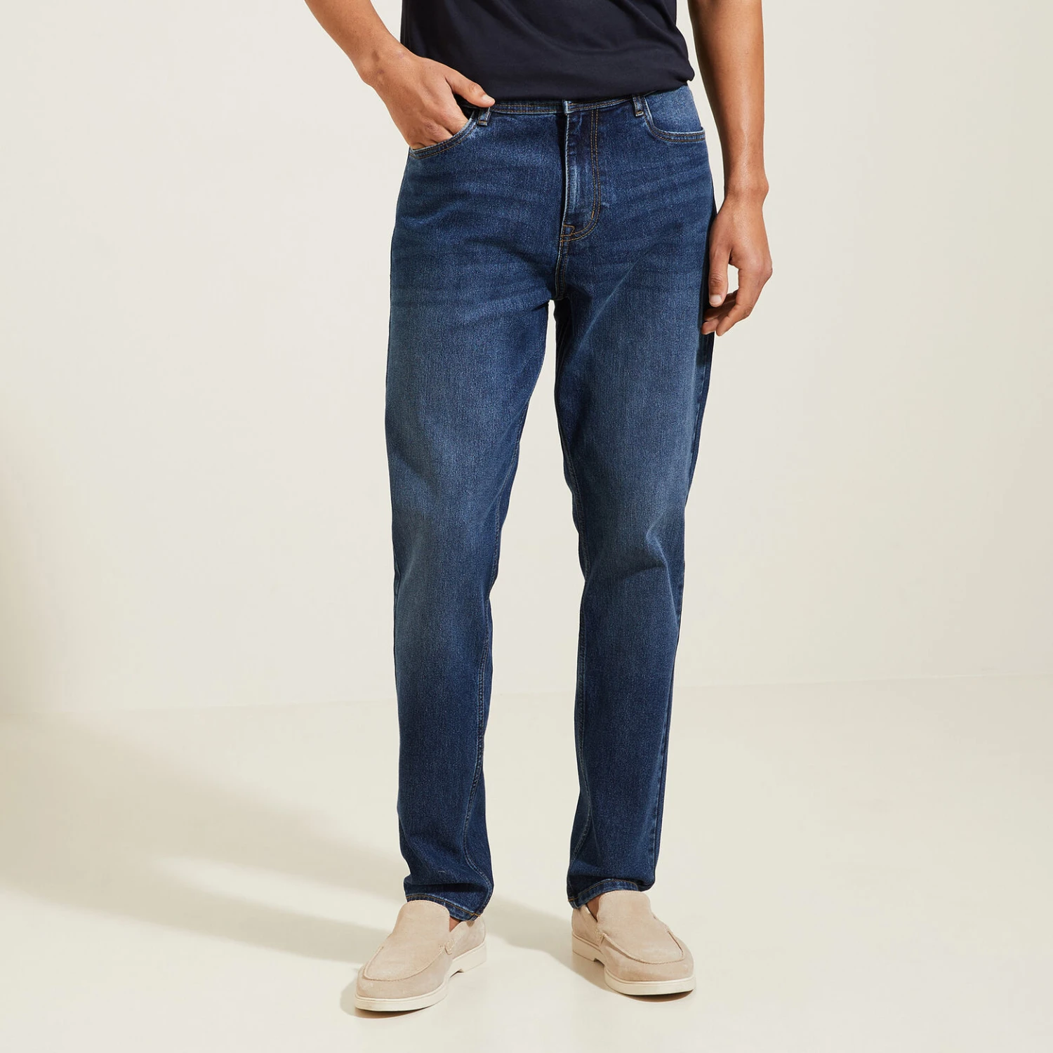 Ce jean en denim, épais et épuré, assure style et confort en toutes circonstances.