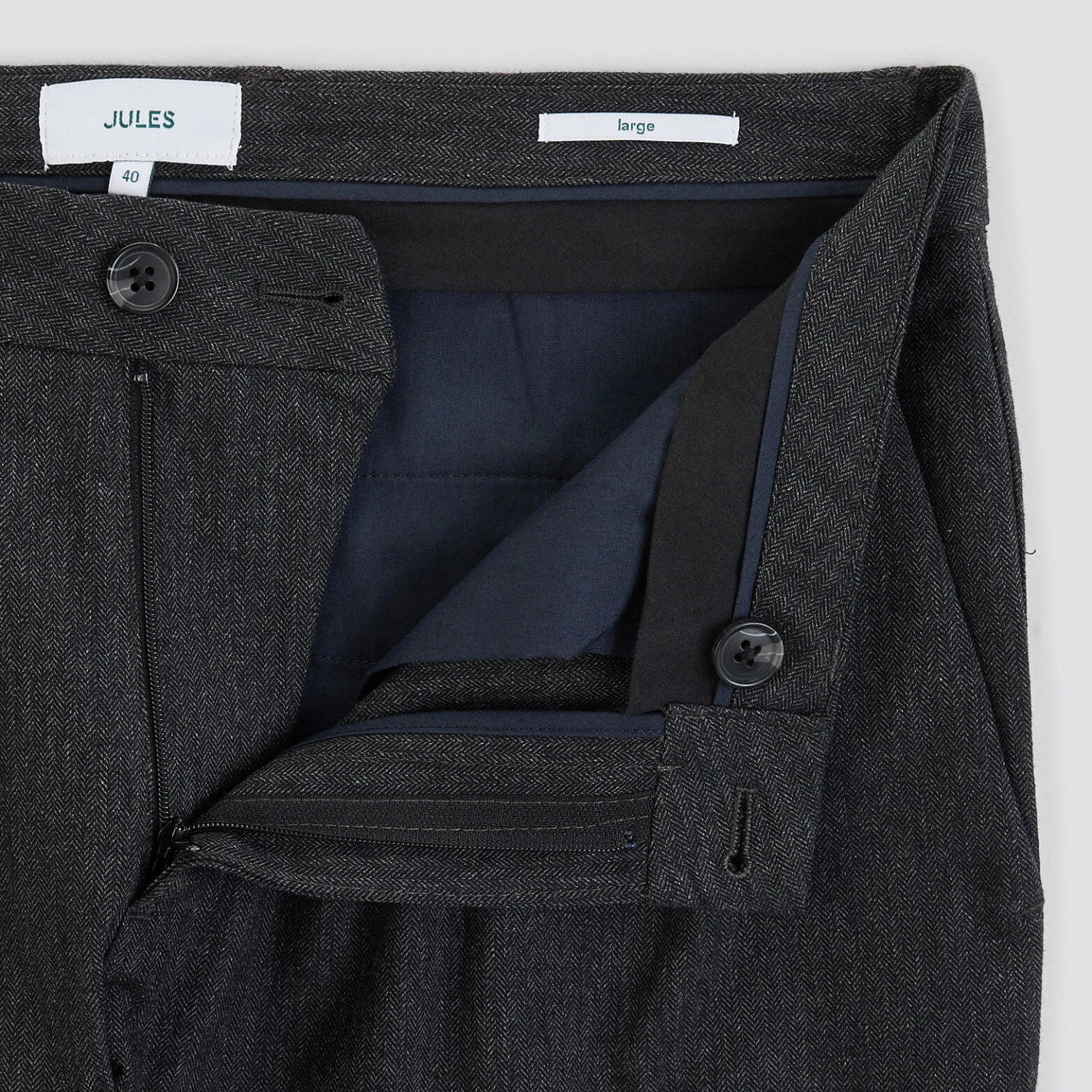 - 2 poches italiennes avant + 2 poches passepoilées arrière