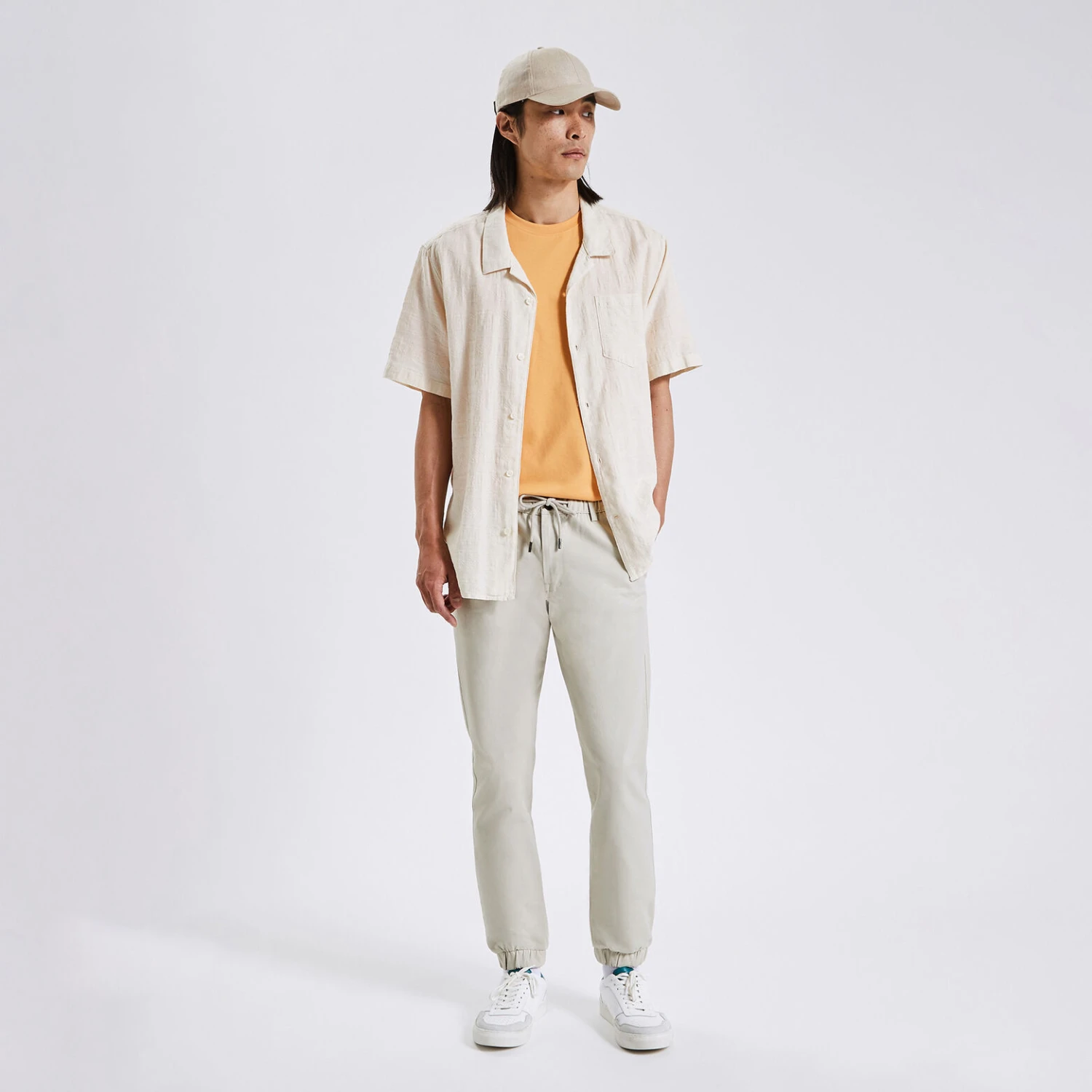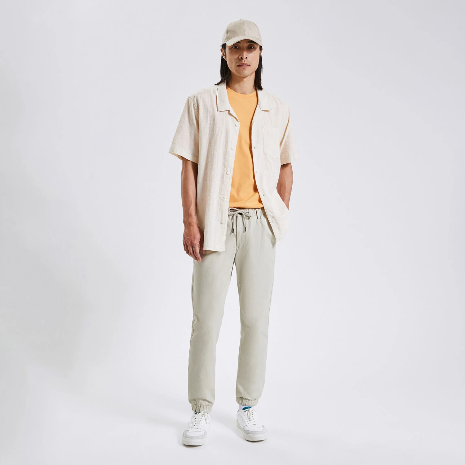 Le pantalon chino à taille élastiquée, indispensable du vestiaire masculin, se porte en mode décontracté. Il s’associe parfaitement avec un tee-shirt ou un sweat.