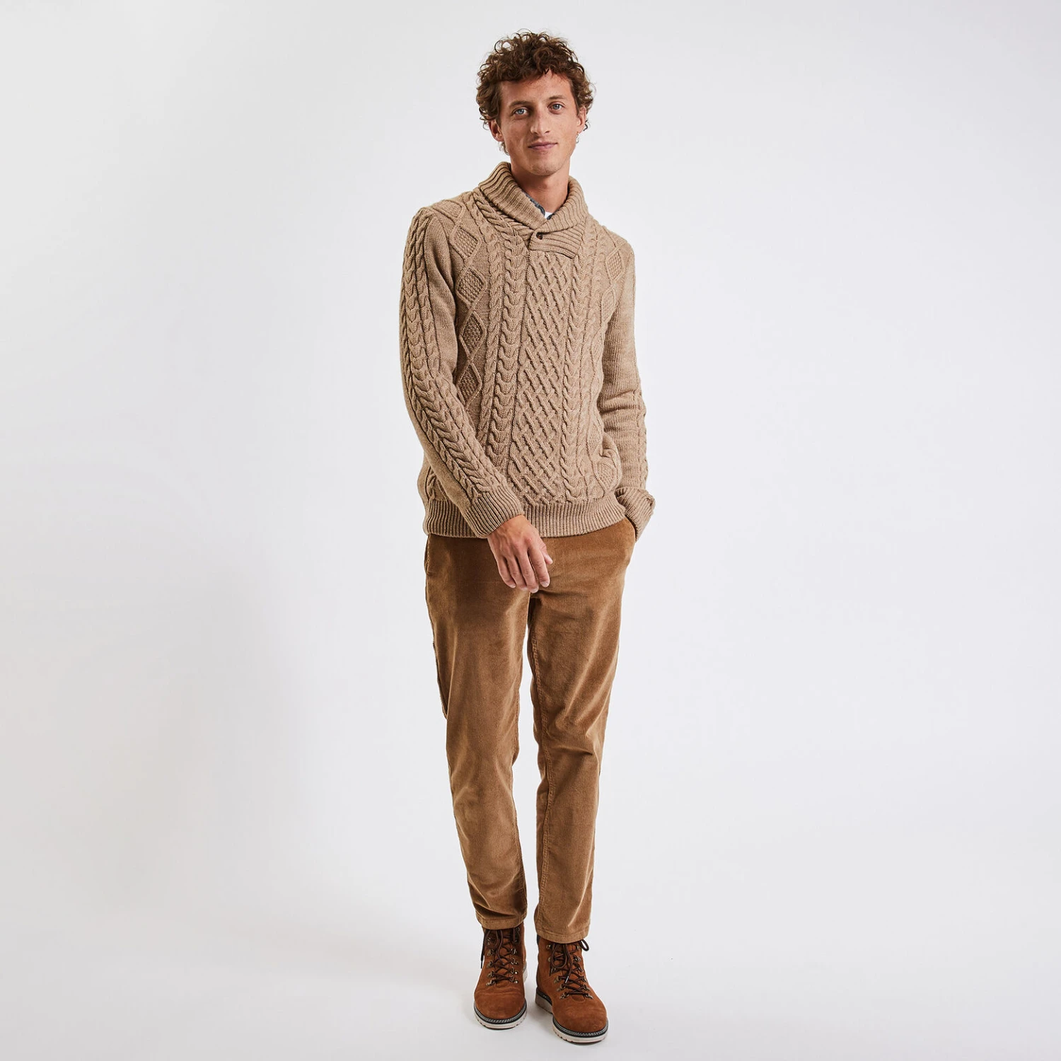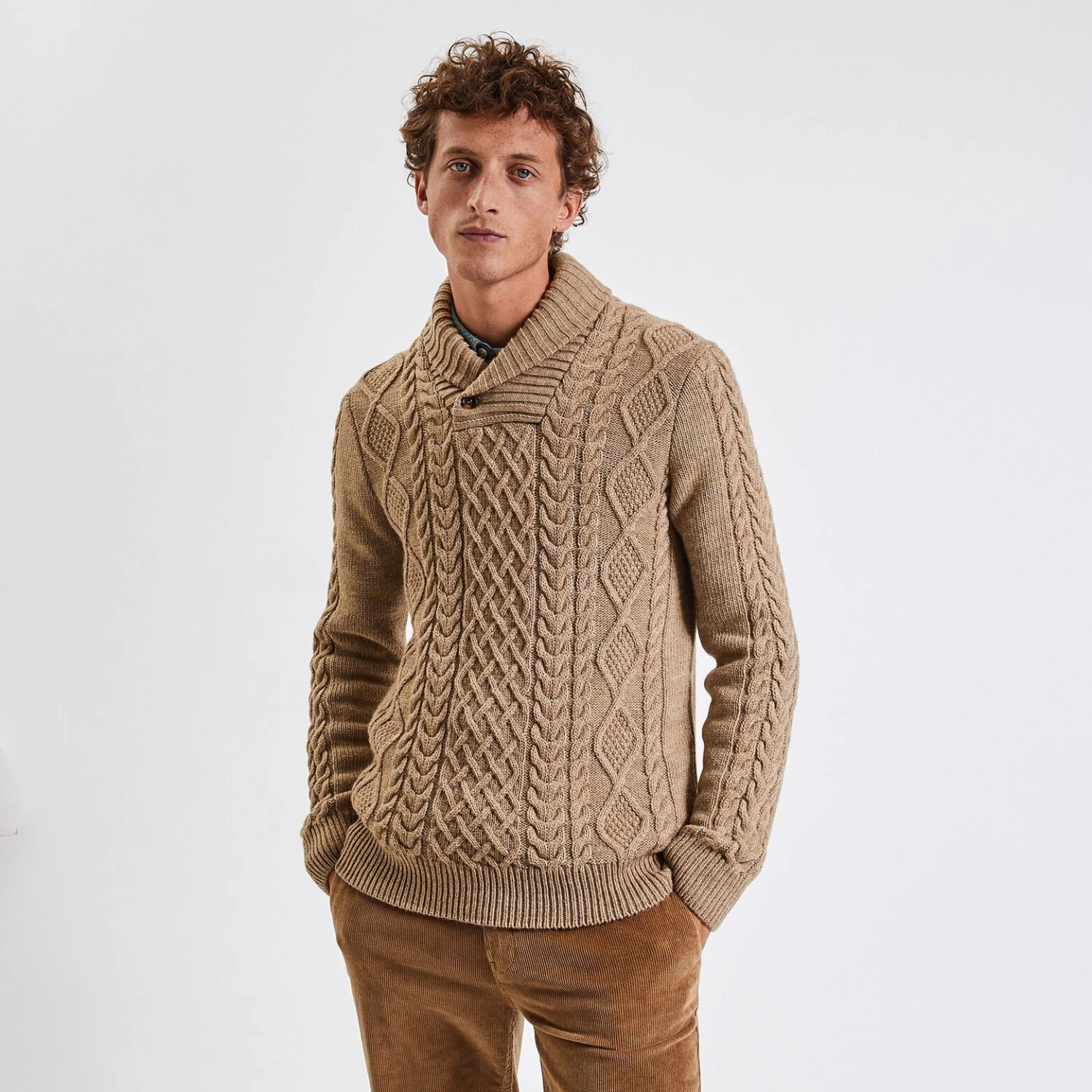 Matière douce et chaude, ce pull maille torsadée contenant de la laine, chaud et isolant, deviendra vite incontournable dans le dressing masculin !