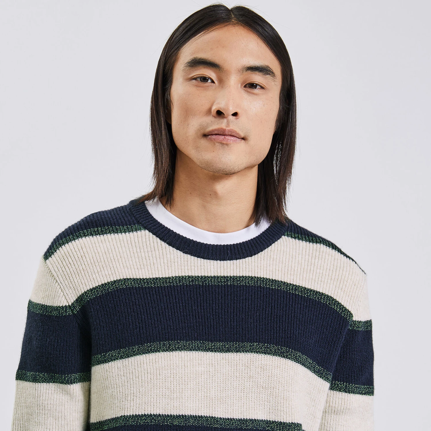 Ce pull à rayures, chaud et confortable, se porte aussi bien en mode casual qu’en mode chic !