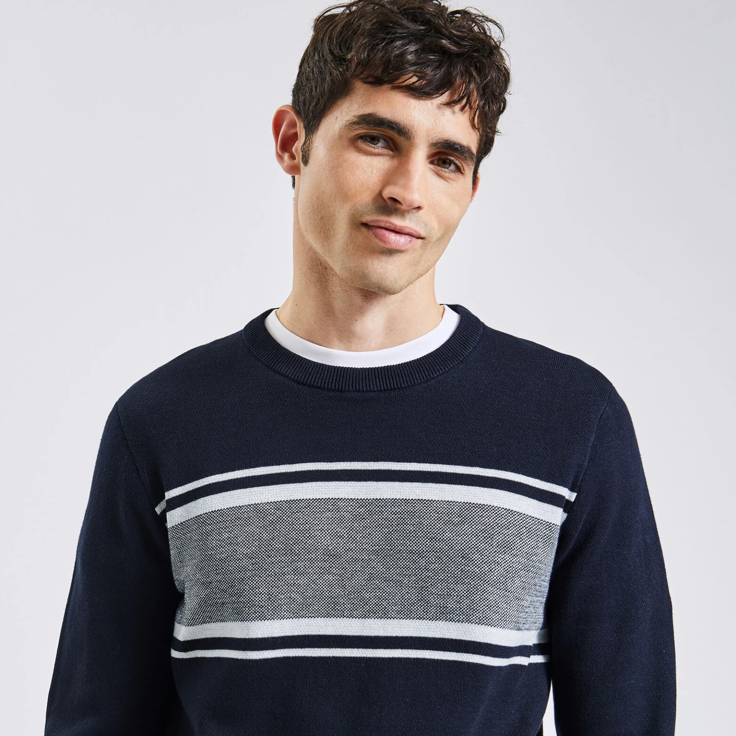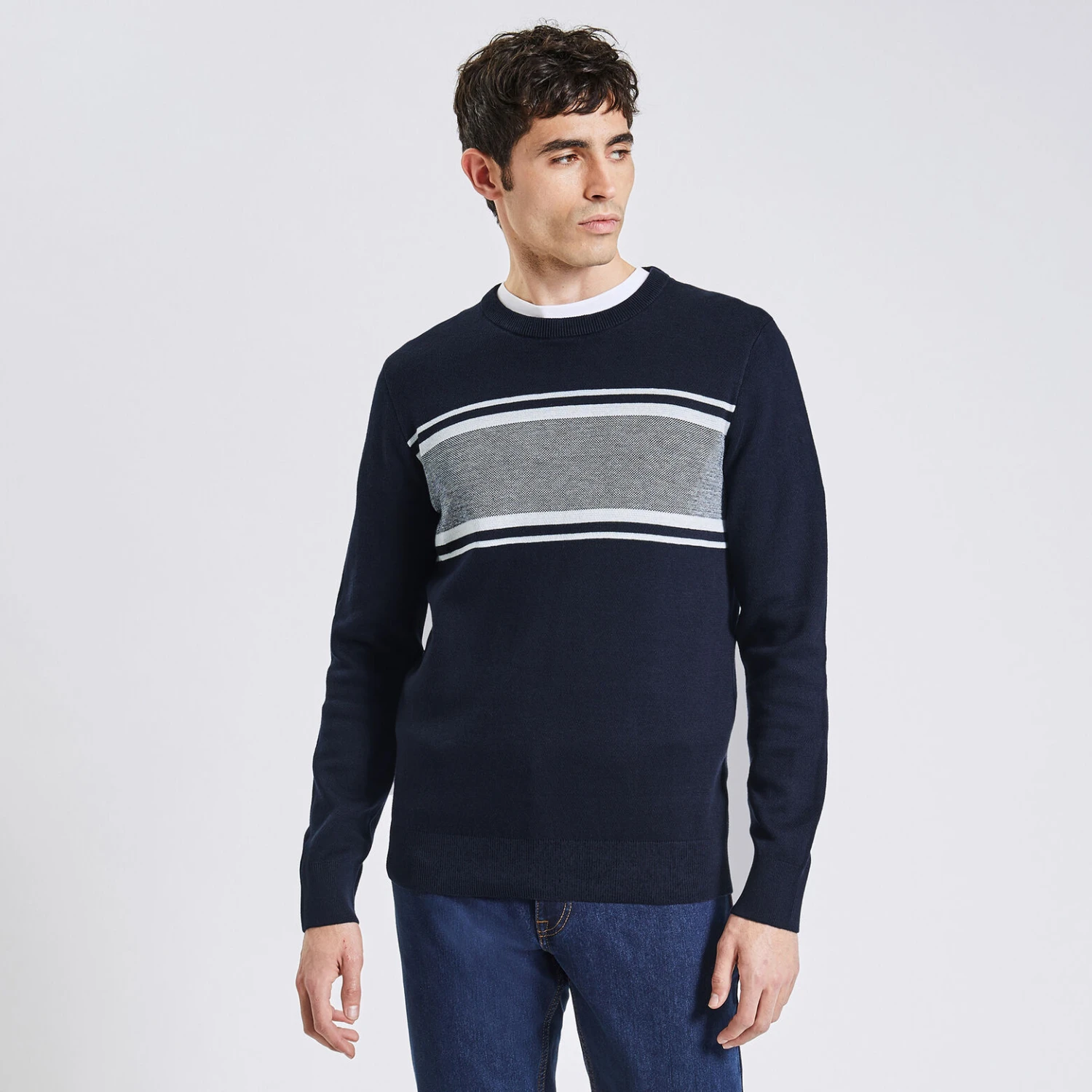 Pour un style casual et décontracté, misez sur ce pull colorblock avec un jean ou un chino !