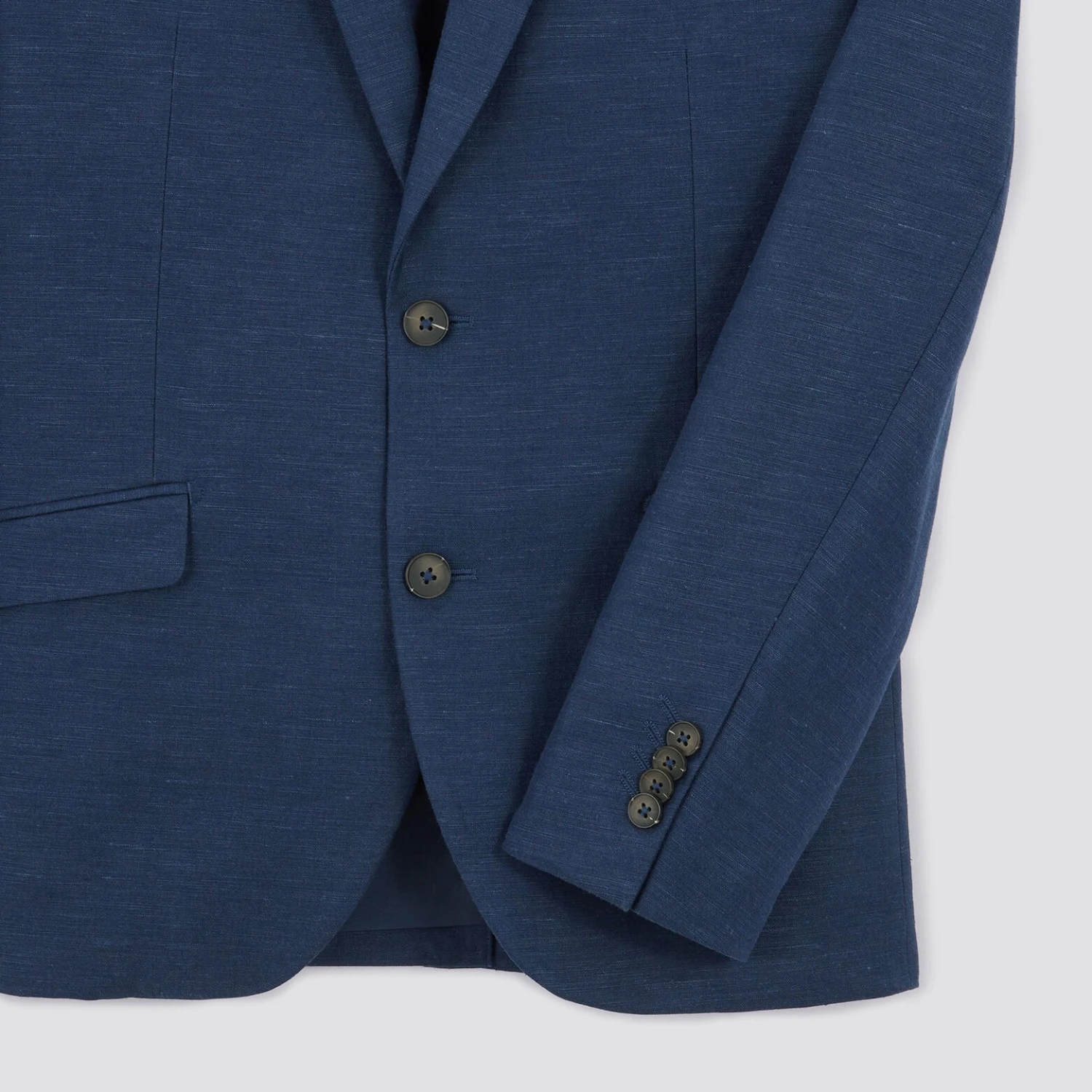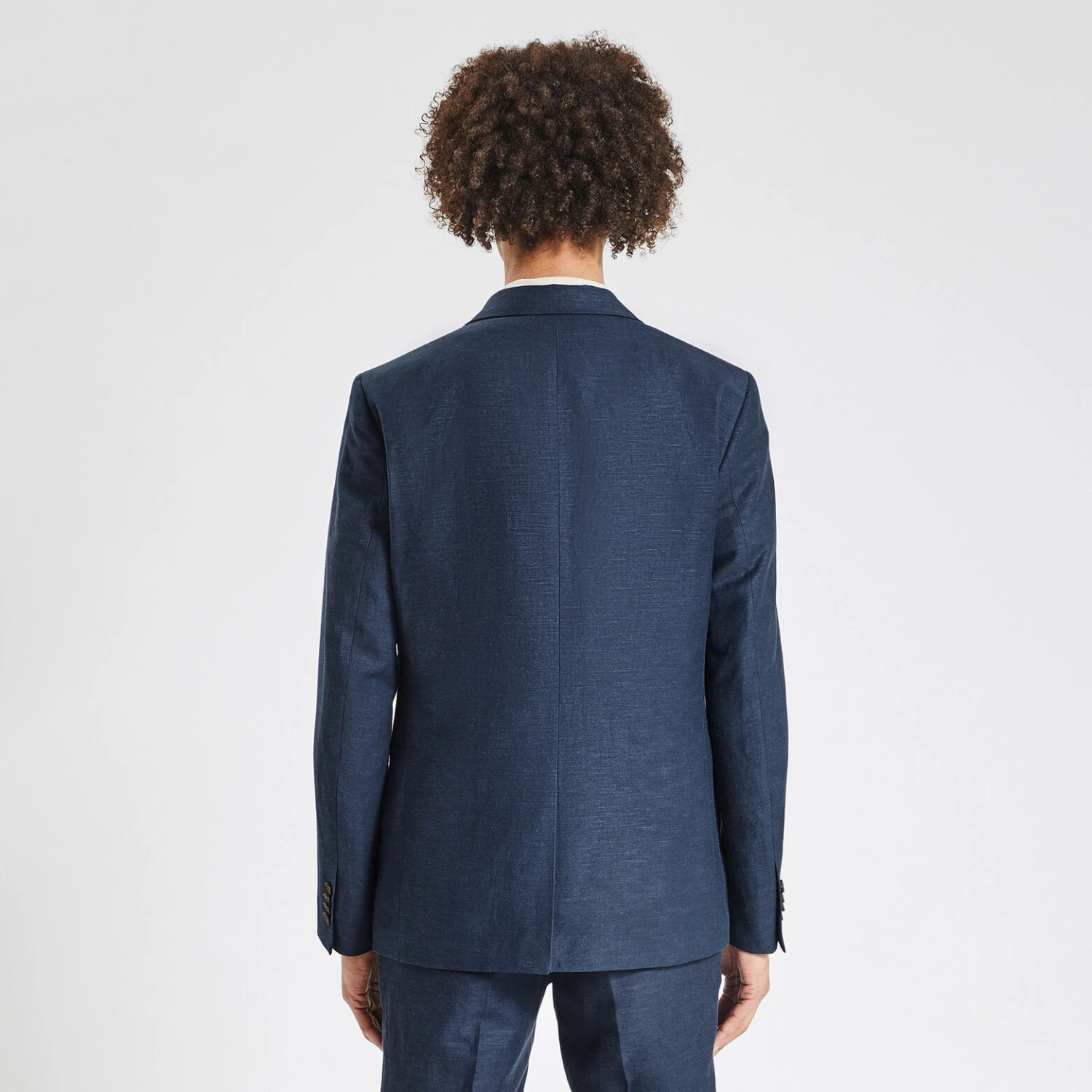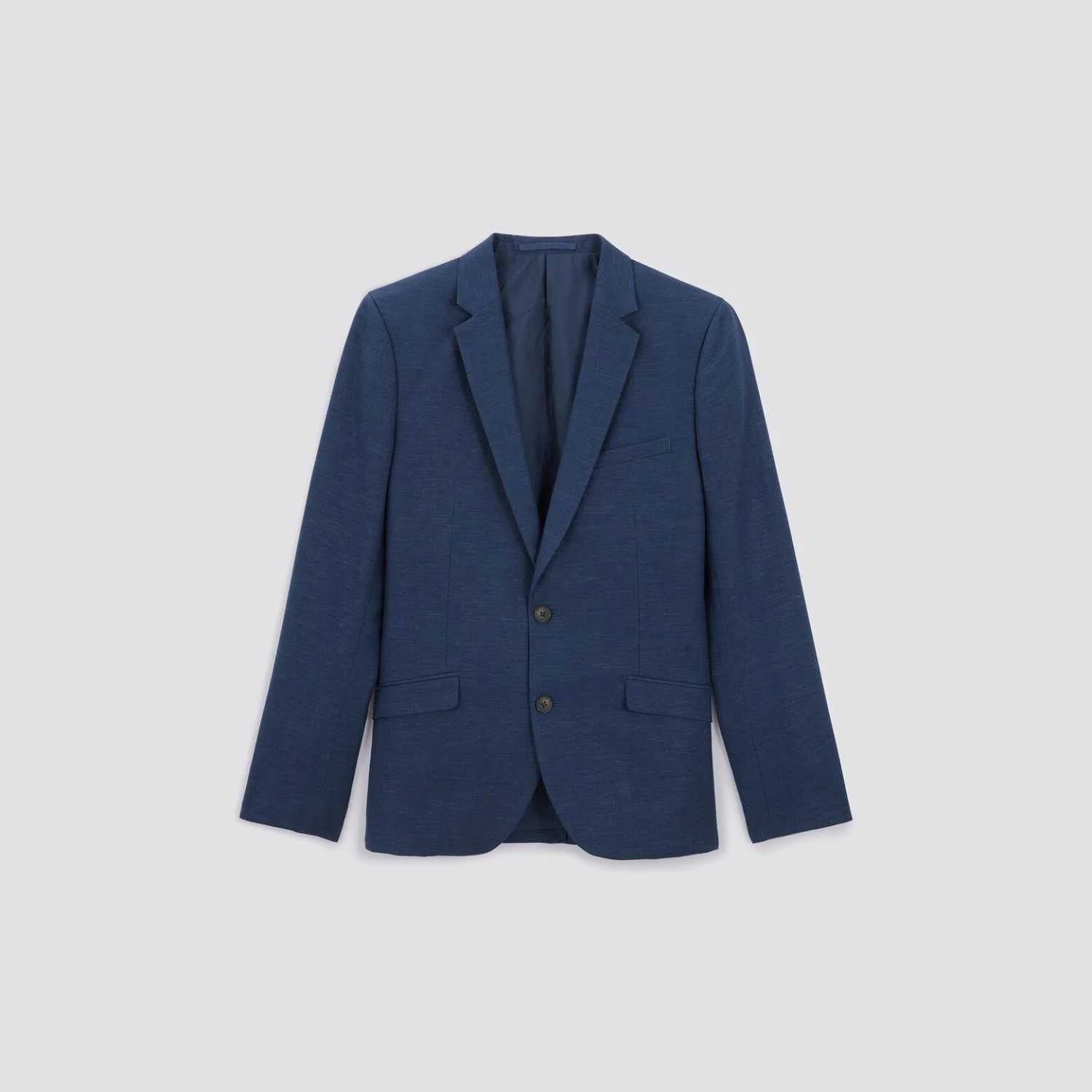 Cette veste de costume slim contient du lin (entre 55 et 58% en fonction du coloris).