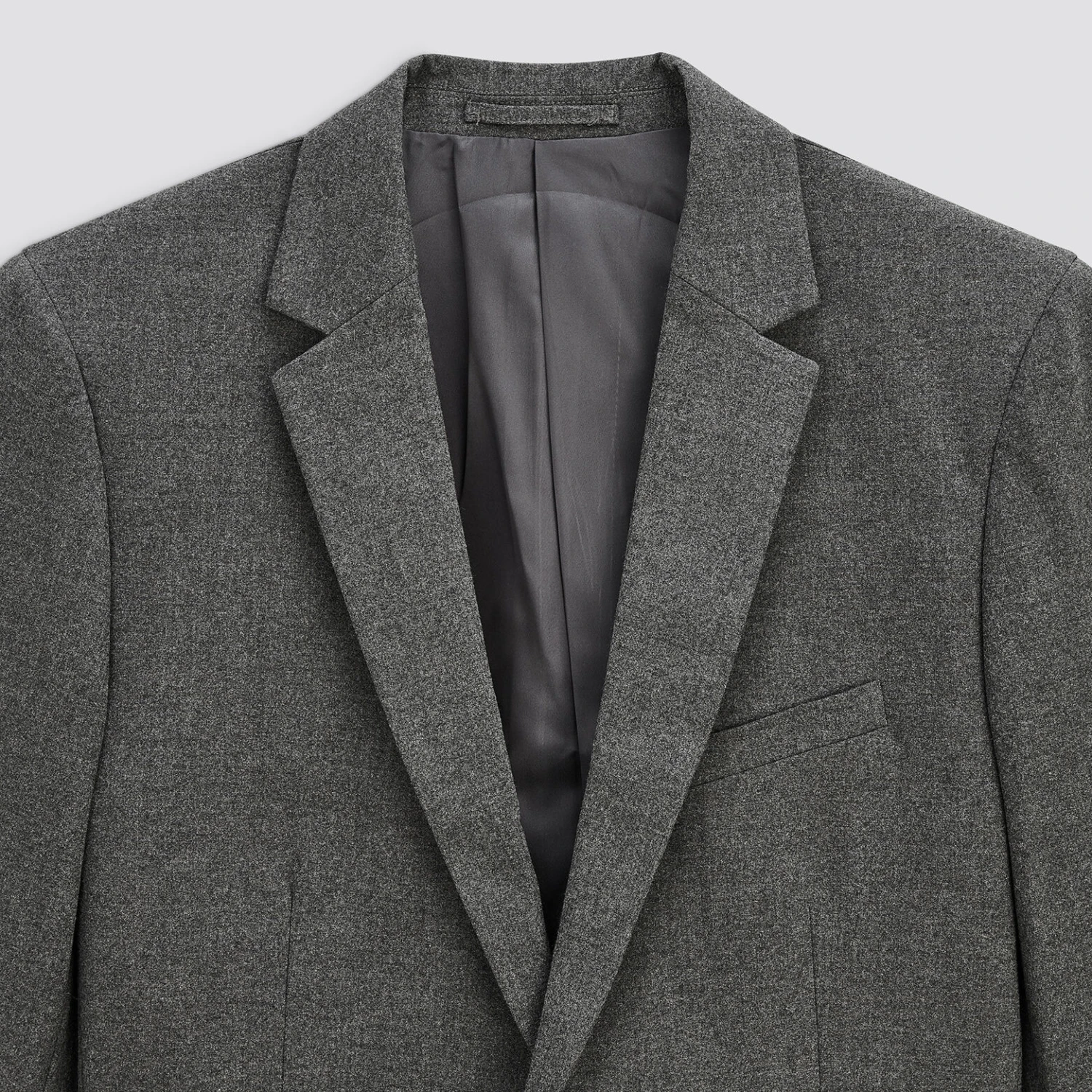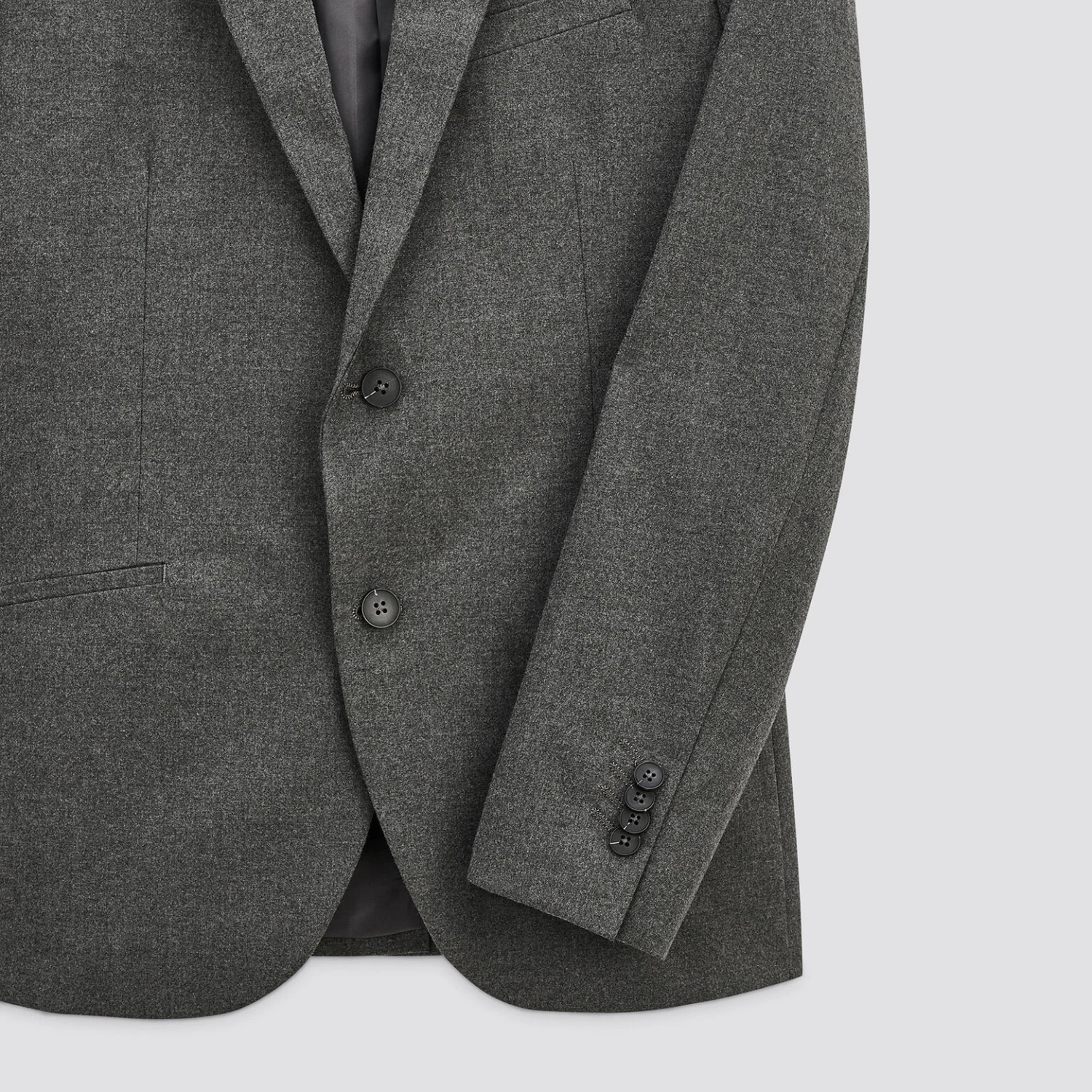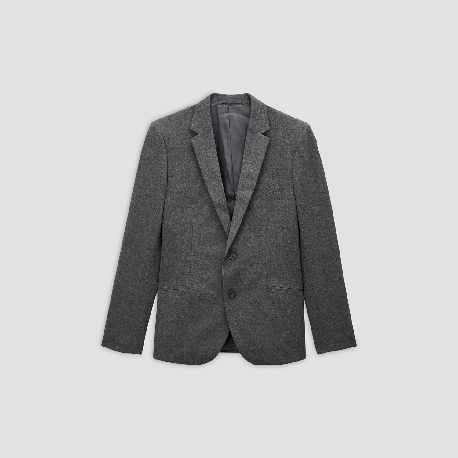Cette veste de costume slim flanelle possède une fermeture deux boutons, deux poches passepoilées cousues sur le devant, une poche cousue poitrine et deux poches intérieures. Les bas de manches sont boutonnés. Cette veste contient de l’élasthanne pour plus de confort.